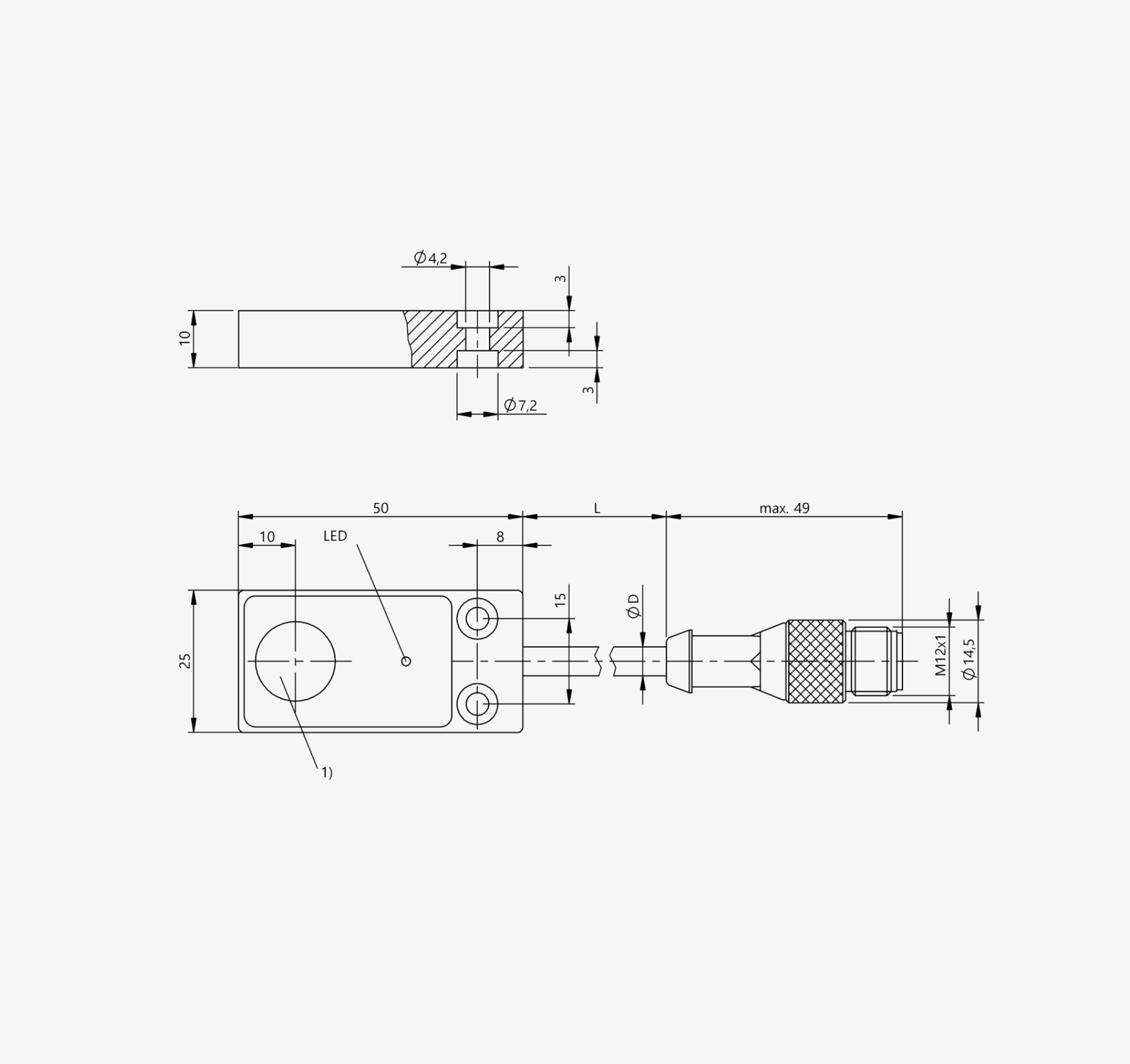 Габариты - 50 x 25 x 10 мм Типовой корпус - 50x25x10 Установка - заподлицо Диапазон - 5 мм Выход- PNP Нормально разомкнут (NO) Частота переключения - 500 Гц Материал корпуса - Алюминий Материал рабочей поверхности - PBT Подключение - Кабель с разъемом, M12x1, 4-контактный, 0,20 м, PUR Рабочее напряжение U -10 ... 30 В постоянного тока Рабочая температура - -25...70 °C Степень защиты IP - IP67 |