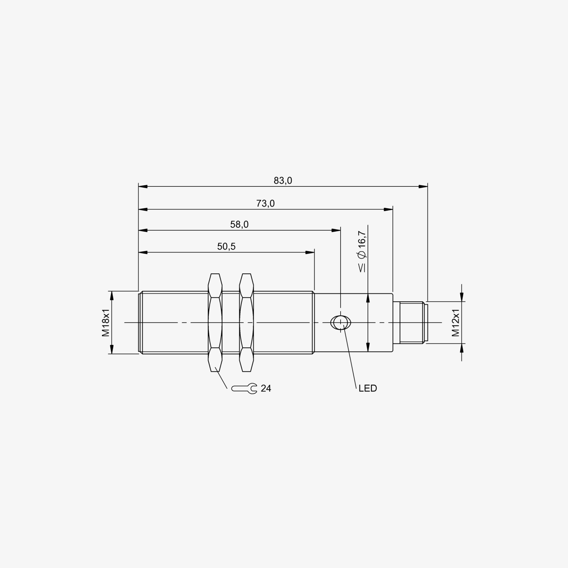 Габариты -М18 x 83 мм Корпус типа - M18x1 Установка - заподлицо Диапазон - 8 мм Выход - PNP нормально разомкнут (NO) Частота переключения - 1000 Гц Материал корпуса - Латунь с покрытием, не содержащим никеля Материал рабочей поверхности - PBT Подключение - Разъем M12x1, 4-контактный Рабочее напряжение U - 10 ... 30 В постоянного тока Рабочая температура - -25...70 ° C Степень защиты IP - IP68 |