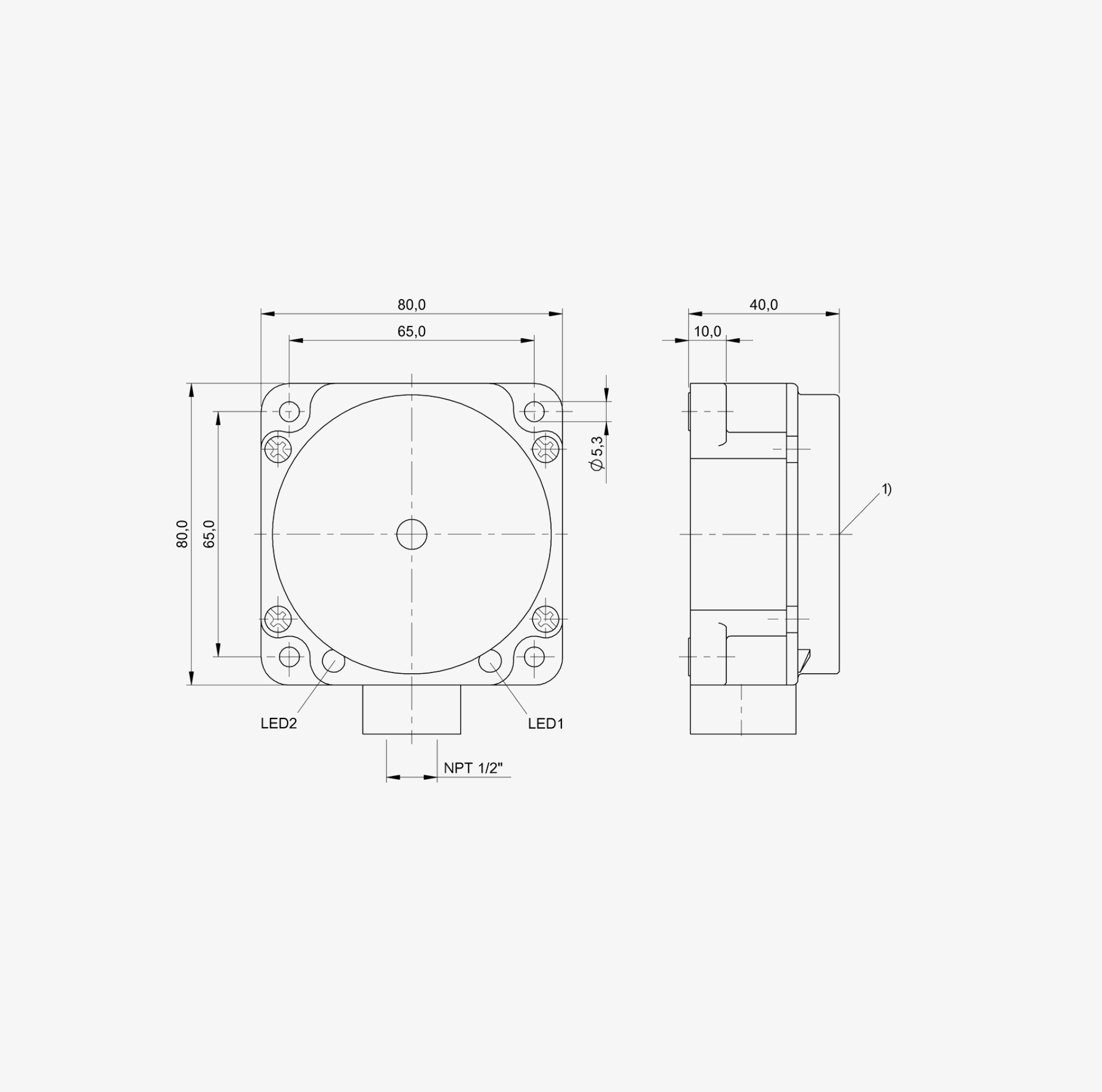 Габариты - 80 x 80 x 40 мм
